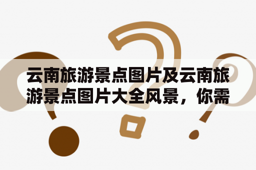 云南是一个充满魅力和美景的S份,有着许多令人惊叹的旅游景点。下面将为你介绍一些人气较高的景点,并提供美丽的图片,帮助你更好地了解这个美丽的地方。