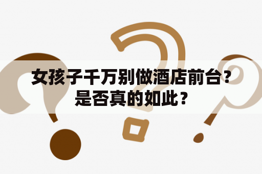 所以,女孩子千万别做酒店前台虽然看似有些夸张,但是从实际情况来看,这份职业确实存在一些难度和不适合女孩子从事的因素。当然,这并不代表女孩子一定不能从事酒店前台的工作。只要有足够的应变能力和身体素质,就可以胜任这份职业。