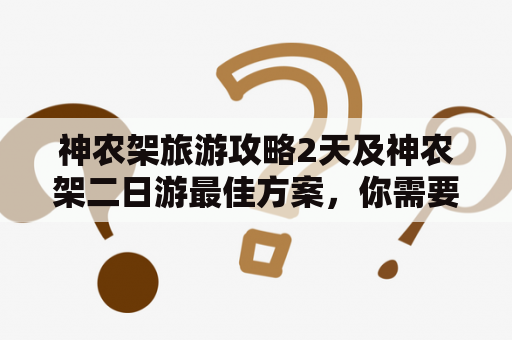如果你正在寻找一个完美的自然风光和文化之旅,那么神农架绝对是一个不错的选择。它以其壮观的自然风光、深厚的文化底蕴和众多的旅游景点而著名。在本文中,我们将为您提供神农架旅游攻略2天及神农架二日游最佳方案,帮助您计划一次难忘的旅行。