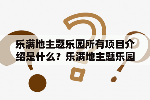 乐满地主题乐园所有项目介绍是什么?乐满地主题乐园是一个拥有众多主题项目的大型游乐园,其各个项目均具有不同的主题特色,深受游客的喜爱。