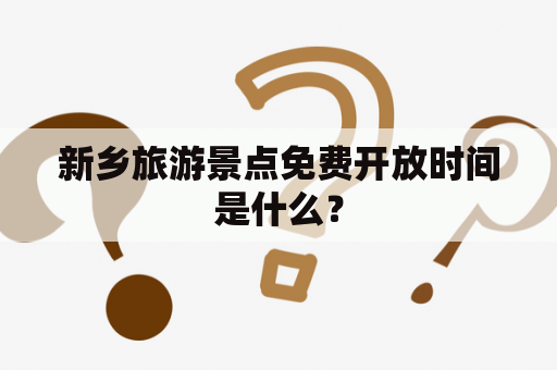 关于新乡旅游景点免费开放的时间,一般是每周的周六、周日和法定节假日。但是具体时间还需要根据景点的不同而有所区别,游客可以在游玩前向景区查询或者咨询当地旅游局的工作人员。