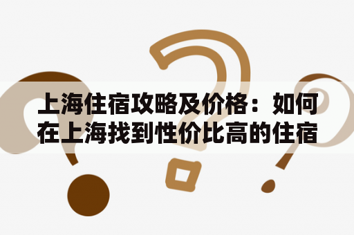 上海住宿攻略及价格:如何在上海找到性价比高的住宿?