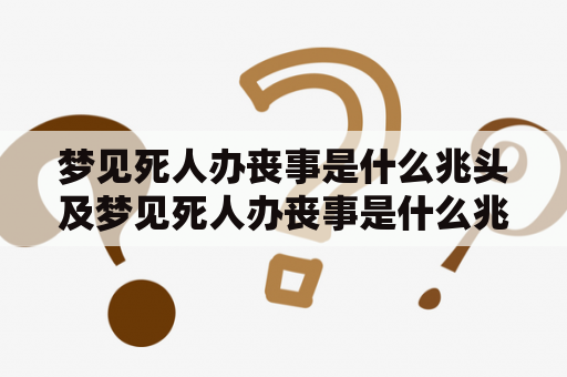 梦见死人办丧事是许多人常见的梦境之一,对于这样的梦境,许多人会感到害怕和不安。那么,梦见死人办丧事是什么兆头?周公解梦又是如何解读这个梦境的呢?下面我们来一起看看。