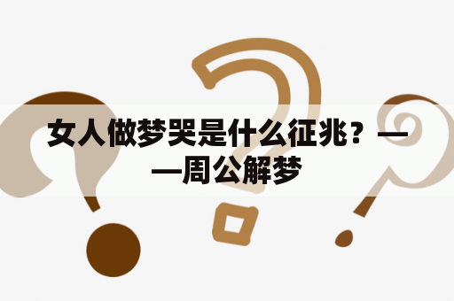 女人在梦中哭泣,往往会引起人们的关注,特别是在周公解梦的传统文化中,女人做梦哭的含义也颇受关注。那么,女人做梦哭是什么征兆呢?以下是对这一问题的详细解答。