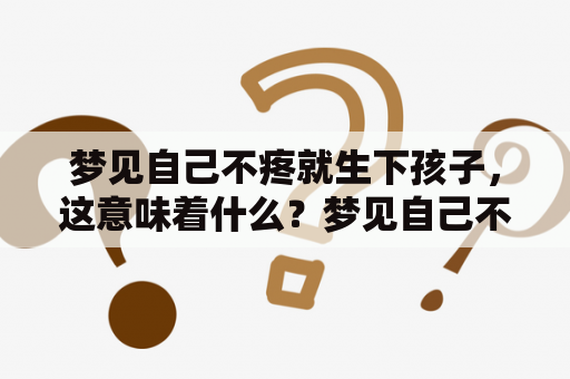 梦见自己不疼就生下孩子是经常出现在女性梦中的一种场景。孩子象征着未来的希望和生命的延续,而生孩子则意味着一种新的开始。那么,梦见自己不疼就生下孩子到底意味着什么呢?