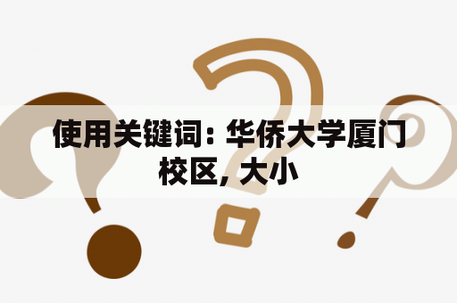 华侨DX厦门校区位于厦门S思明区,总面积为1,043亩。该校区是华侨DX的主校区,设有人文学院、经济学院、工学院、艺术学院、外国语学院等多个学院。校园内绿树成荫、环境优美,是学生学习与生活的理想场所。