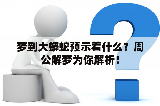 梦到一条大蟒蛇可能会让人感到恐惧和惊慌,但是这个梦境出现在你的梦中,确实有一定的预示作用。周公解梦认为,大蟒蛇通常代表着权力、欲望和危险。因此,根据梦中情境和个人经历,大蟒蛇的预示意义也不尽相同。