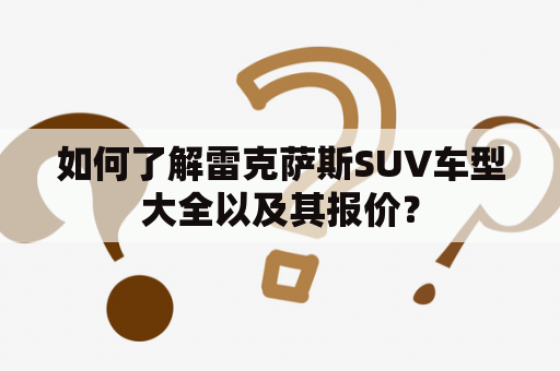 如何了解雷克萨斯SUV车型大全以及其报价?