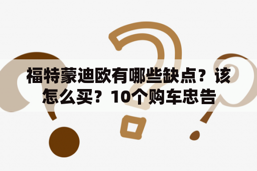 福特蒙迪欧是一款非常受欢迎的中级轿车,备受消费者青睐。但是,像任何其他车型一样,它有自己的缺点和优点。本文将介绍福特蒙迪欧的一些缺点以及购车时应该注意的问题。
