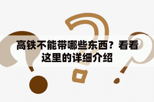 所以,在乘坐高铁时,一定要注意禁止携带物品的规定,以免耽误行程或者遇到不必要的麻烦。