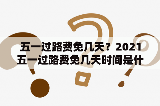 随着五一节日的临近,许多人都开始关注五一过路费的免费政策。那么,五一过路费到底免几天呢?2021年的五一过路费免费时间段是什么?下面我们就来详细了解一下。
