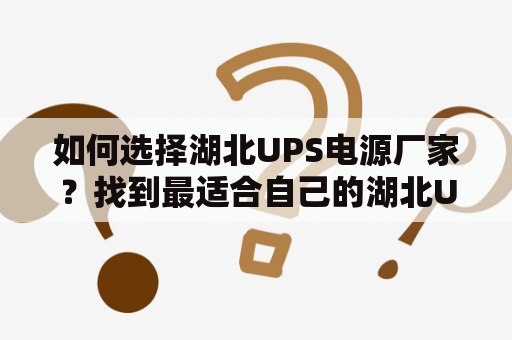 如何选择湖北UPS电源厂家?找到最适合自己的湖北UPS品牌!