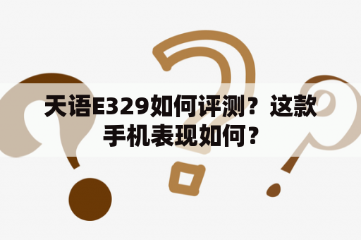天语E329是一款自2017年以来推出的智能手机。它采用了5.5英寸的显示屏幕,分辨率为1920 x 1080像素,搭载了联发科Helio P20处理器和4GB的内存。它还配备了32GB的存储容量,支持microSD卡扩展。除此之外,天语E329还内置有一块3000毫安时的电池,后置摄像头为1300万像素,前置摄像头为500万像素。