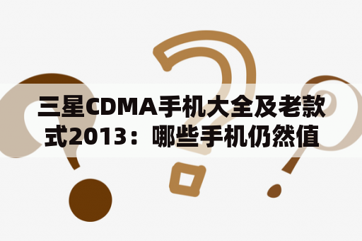 CDMA手机是一类使用CDMA网络技术的手机,虽然在4G时代已经逐渐被淘汰,但仍有很多用户需要使用CDMA手机。三星作为全球知名的手机品牌,也推出了不少CDMA手机。在这里,我们将介绍三星CDMA手机大全以及老款式2013,帮助大家了解哪些手机仍然值得购买。